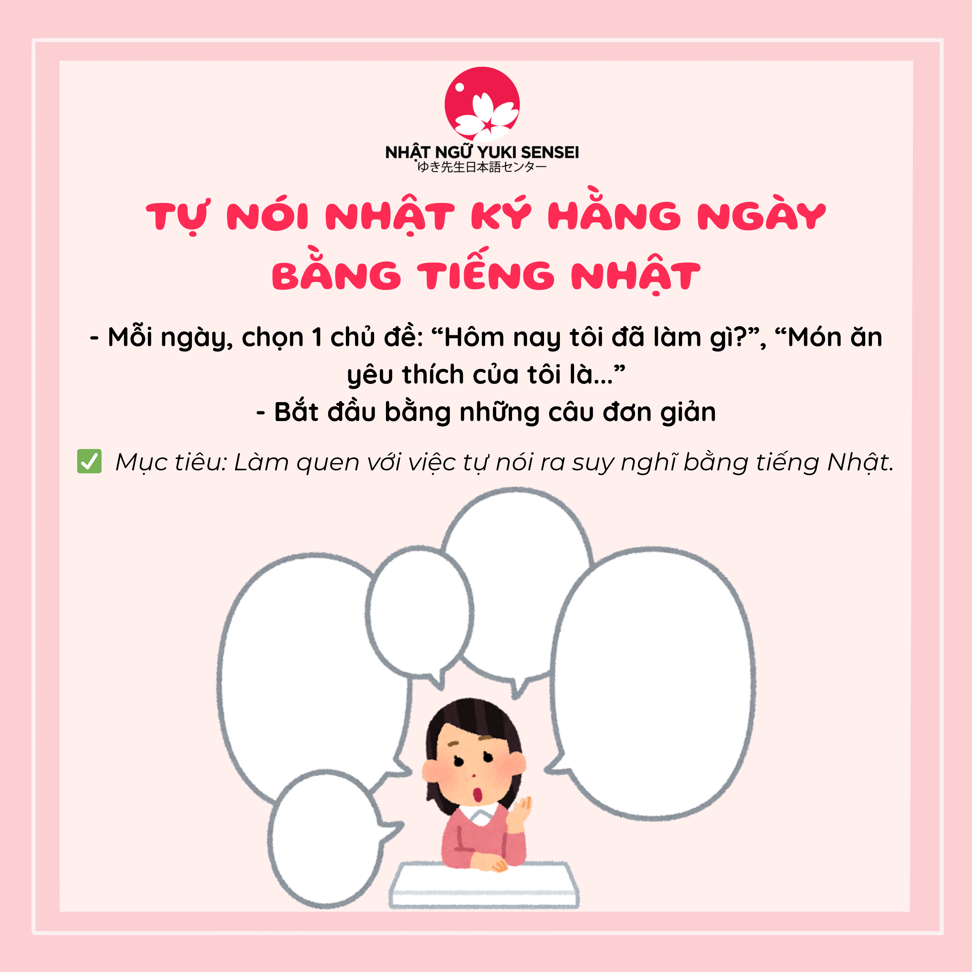 ???? Mục tiêu: Làm quen với việc nghĩ và nói bằng tiếng Nhật, giảm cảm giác ngại ngùng.