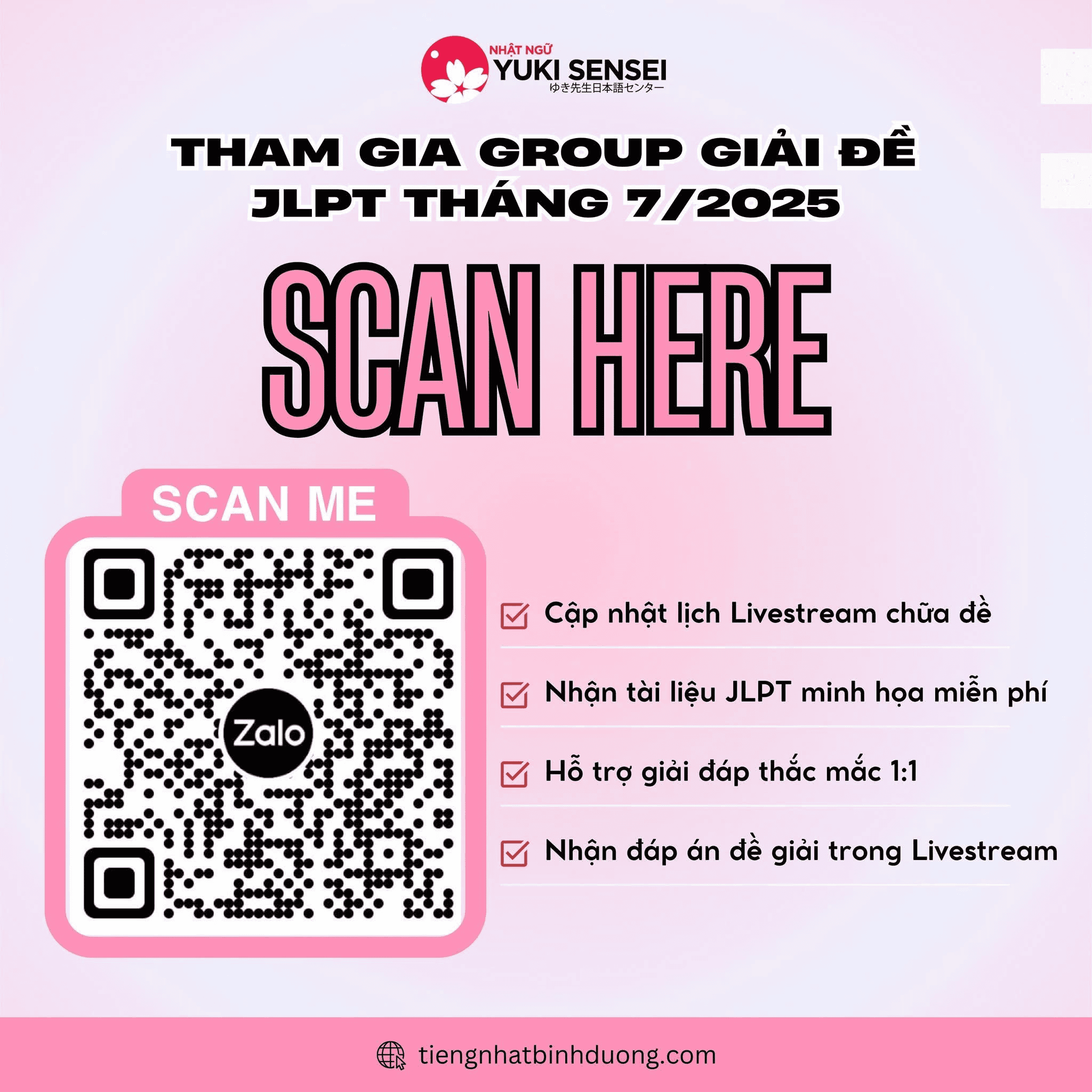 ???? ĐỪNG LO! Vào ngay GROUP ZALO GIẢI ĐỀ JLPT 7/2025 của Yuki Sensei để: